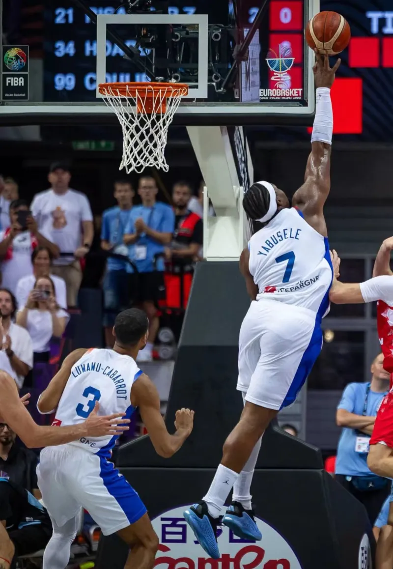 本场比赛,法国队球员盖尔雄-亚布塞莱出场35分钟,投篮20中12,三分球12中6,罚球10中6,得到36分6篮板2助攻1盖帽。